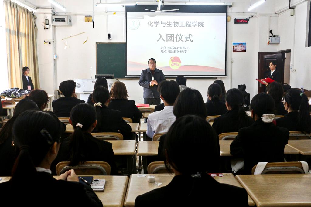 党委书记覃宝山在讲话中指出共青团是党的助手和后备军,接受中国共产党的领导。他希望新团员以团徽为指引,锤炼本领、积极奉献,在学业与实践活动中发挥先锋模范作用。
