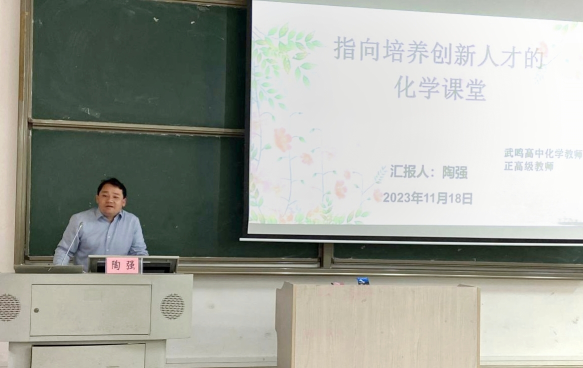 11月18日,william威廉亚洲在弘毅楼2-104开展“指向培养创新人才的化学课堂”为主题的讲座,广西武鸣高中正高级化学教师陶强担任主讲人,公司教师代表和化学专业2021级、2022级全体员工参加讲座,讲座由公司副经理陆俊宇主持。