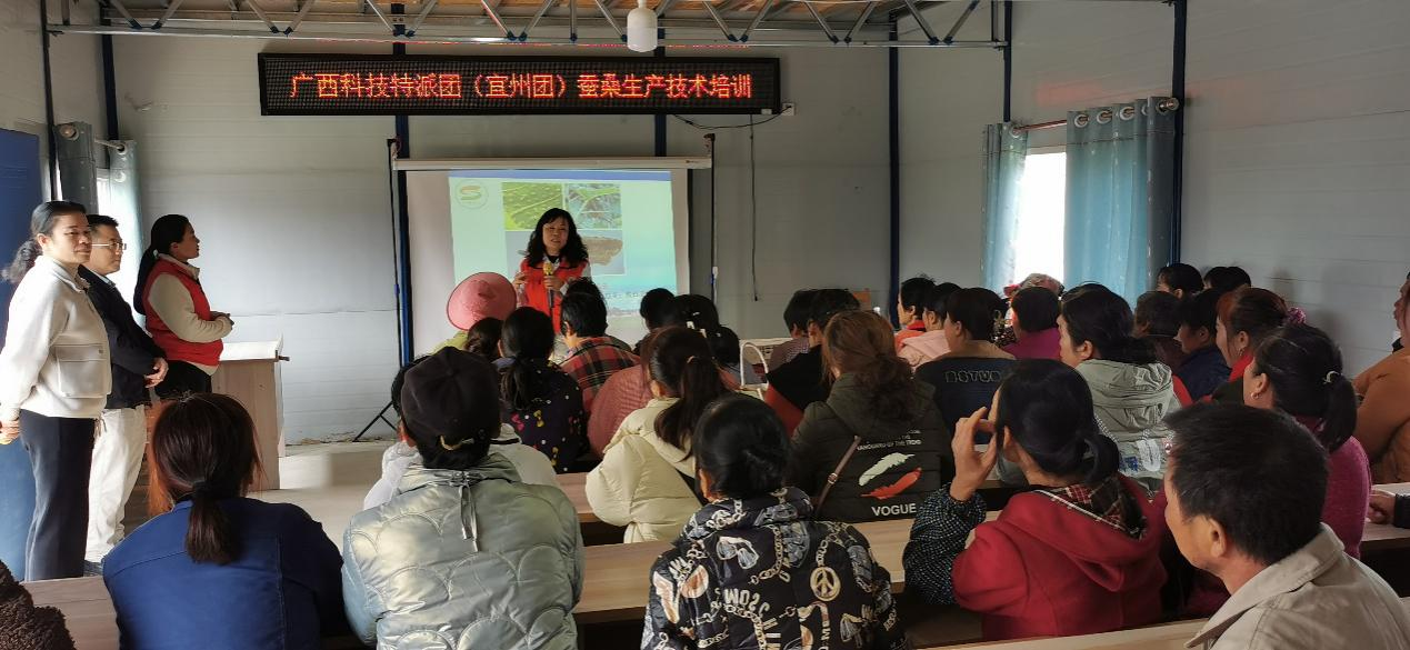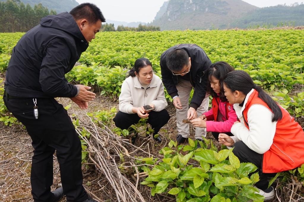 为深入贯彻落实自治区农业农村厅《关于开展寒潮天气和春耕生产 “四个一”集中科技服务活动的通知》文件精神,3月7日,william威廉亚洲科技特派员覃玥、蒋利荣到国家级贫困村宜州区洛西镇洛富村岩口屯参加由乡村科技特派员蚕桑产业团组织的春耕生产“四个一”集中科技服务活动。
