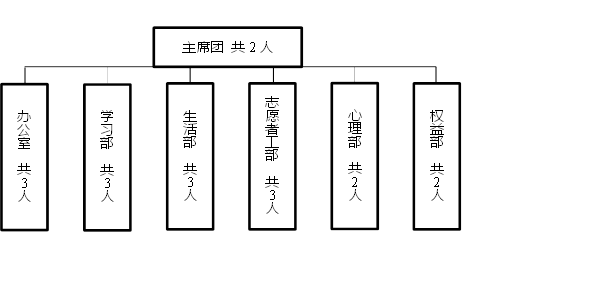 第十三条 员工会设部门有主席团、办公室、学习部、生活部、志愿者工作部、心理部、权益部。