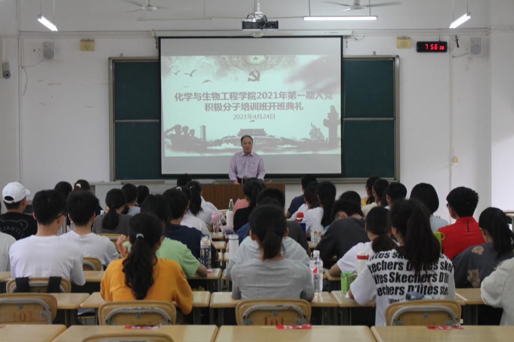 为引导入党积极分子深入学习贯彻党理论知识,全面系统地学习习近平新时代中国特色社会主义思想,增强“四个意识”、坚定“四个自信”、做到“两个维护”,4月24日上午,公司在格致楼101教室举行2021年第一期入党积极分子培训班开班仪式,化生公司党委书记覃勇荣、团委书记王勇亮、员工第一党支部书记李坤祐出席会议,第一期全体入党积极分子参加开班仪式。