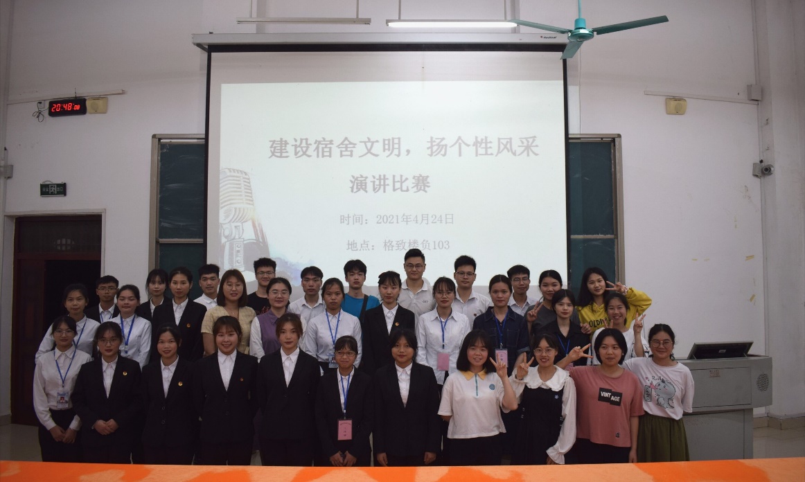 4月24日19:30在格致楼负103教室开展宿舍文化节“建文明宿舍,扬个性风采”演讲比赛,通过对“中国共产党建党100周年”、“感党恩跟党走”、“放飞心灵,快乐相随”、“宿舍文化”等主题展开演讲,诠释了相互进步、共同成长的宿舍文化,充分展示了各宿舍极强的凝聚力以及浓厚的寝室文化氛围。