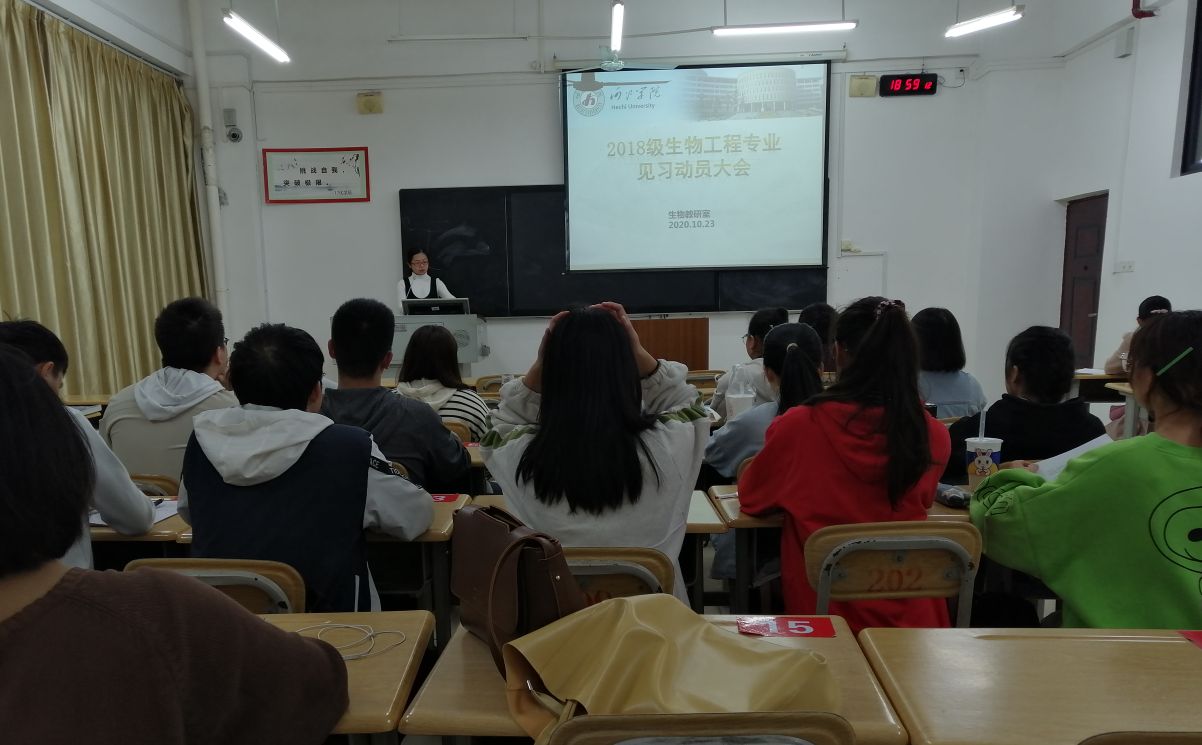 10月23日晚化生公司在格致楼211教室召开2018级生物工程专业的见习动员大会。带队老师覃玥、卢福芝和2018级生物工程专业全体员工参加会议,会议由罗奉奉老师主持。