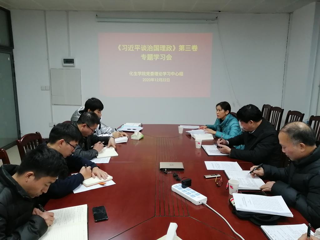 1222日,公司党委理论学习中心组在格致楼512会议室召开《习近平谈治国理政》第三卷专题学习会。公司党委副书记韦伟松应邀出席学习会。学习会由化生党委书记覃勇荣主持。