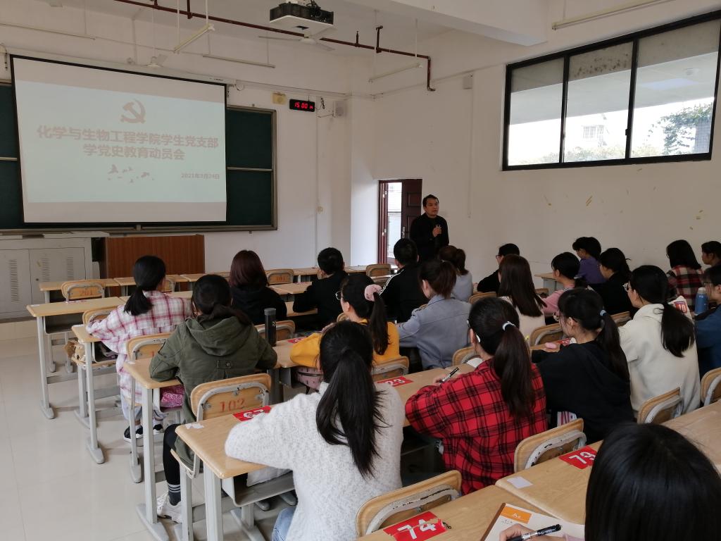 公司员工党支部在3月24日在格致楼101教室召开党史学习教育动员大会,化生公司党委副书记覃宝山出席会议,化生公司全体员工党员参加动员会。