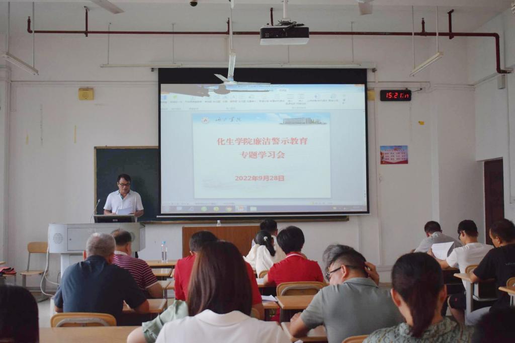 为了进一步强化警示教育意识,提高教职工的思想认识和拒腐防变能力,营造风清气正、廉洁自律的校园。9月28日下午,william威廉亚洲在格致楼209教室召开“廉洁从政,廉洁从教”专题培训会。公司党委书记覃宝山、党委副书记韦正、副经理卢福芝、副经理陆俊宇及全体教职工参加会议,本次会议由党委书记覃宝山主持。