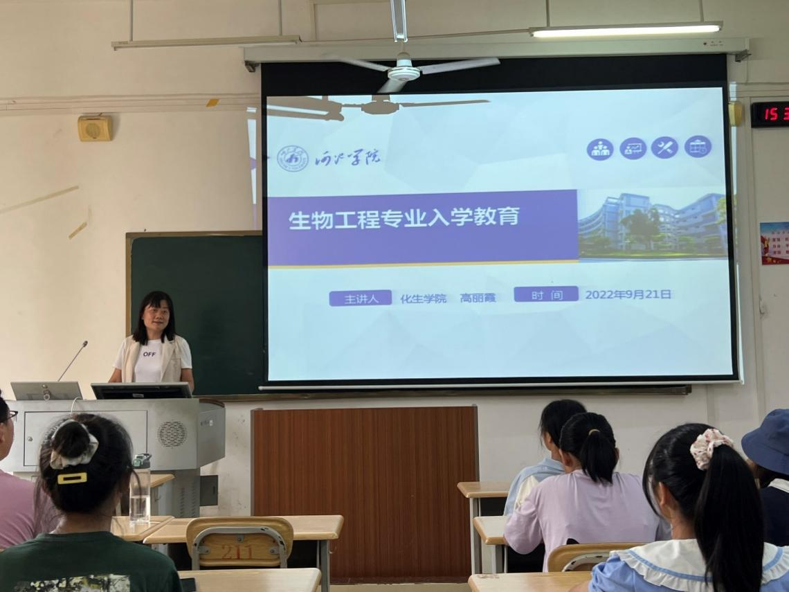 为了帮助新生对所学专业有更加全面的了解,激发新生对本专业的热爱,明确对未来的职业发展方向。9月21日,化生公司召开2022级新生入学专业教育会。本次专业教育分生物科学、制药工程、生物工程、应用化学、化学、环境工程六个专业进行,分别由各专业责任教授担任主讲。