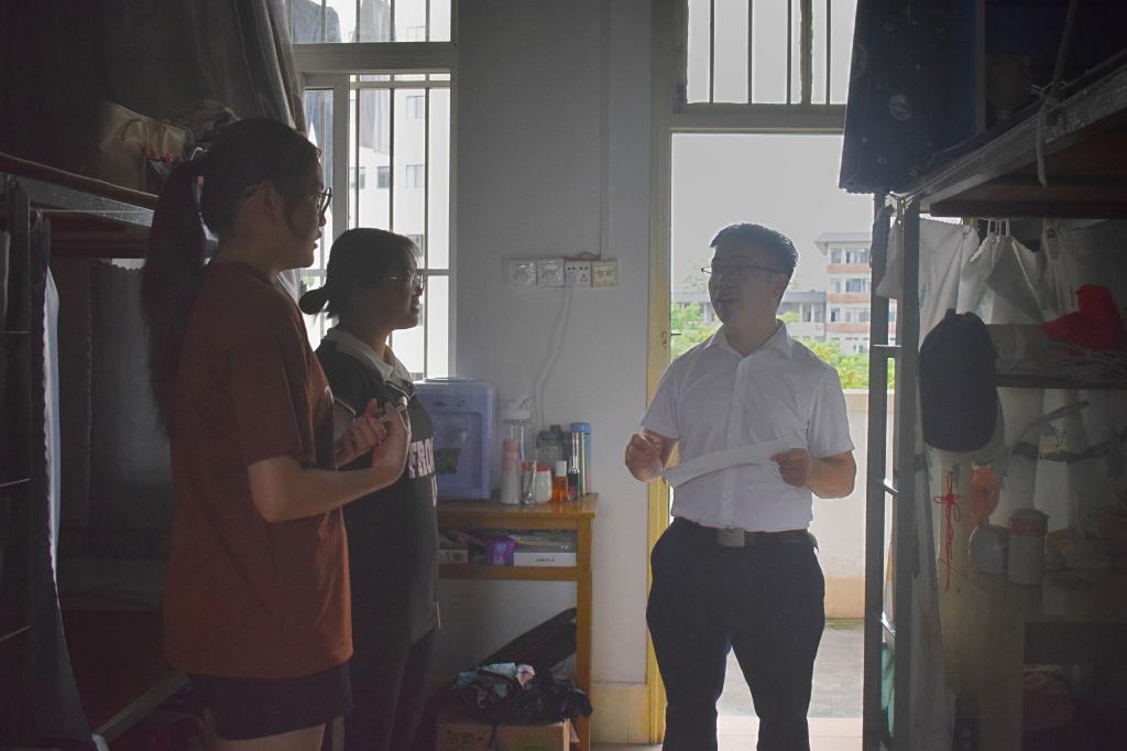 在检查的过程中,韦正与同学们进行了亲切的交谈,全面了解同学们返校后的起居情况,提醒同学们平时要注重个人卫生、保管好自己的财物、用水用电等生活安全。此次宿舍卫生检查绝大部分宿舍都能把寝室收拾得干净整洁,但也有个别宿舍存在物品摆放杂乱,地面不整洁等问题。同时针对存在的问题提醒同学们要及时整改,自觉维护宿舍的卫生环境。