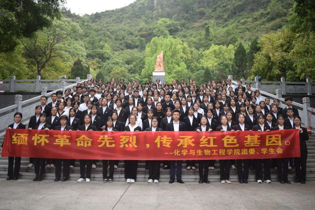 全体成员奏唱国歌,并面向烈士碑哀默一分钟,敬献鲜花,向革命先烈鞠躬,在员工代表陈美彤带领下,全体师生紧握右拳,满怀着对烈士的敬意和哀思,重温入团誓词,坚定奋进报国志向。
