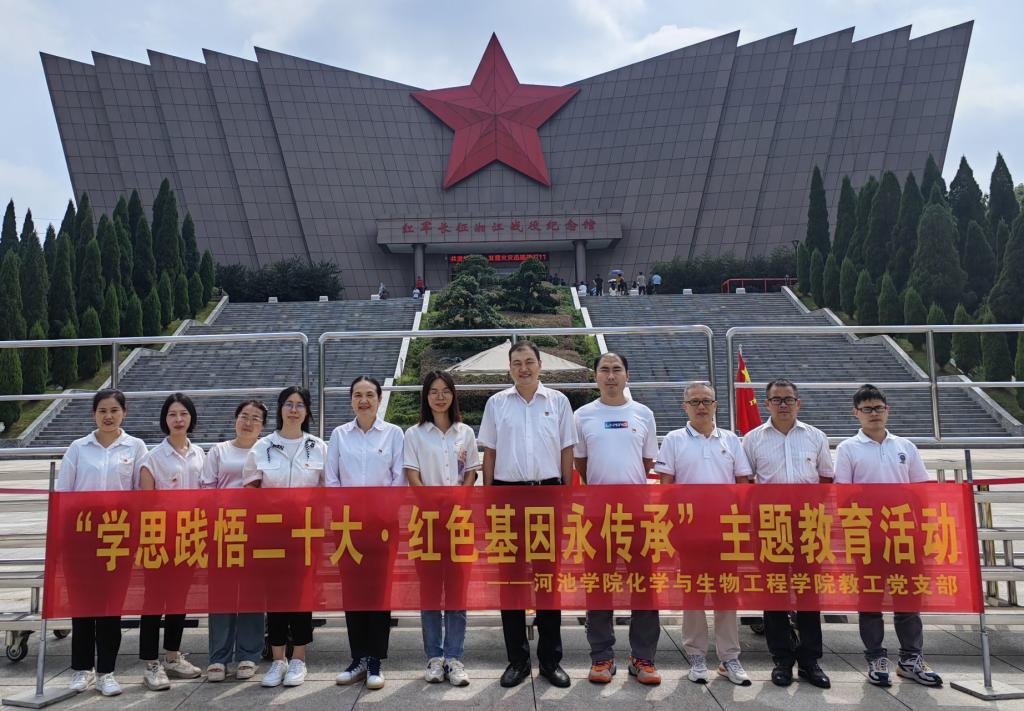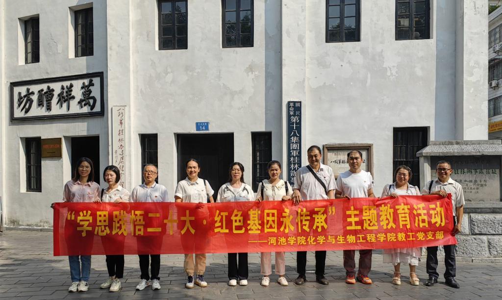 为扎实推进学习贯彻习近平新时代中国特色社会主义思想主题教育,提升“基层党组织号召力、凝聚力和战斗力”的总体要求。9月23日至24日,化学与生物工程学院教工党支部教师代表赴桂林开展“学思践悟二十大 红色基因永传承”主题教育活动。
