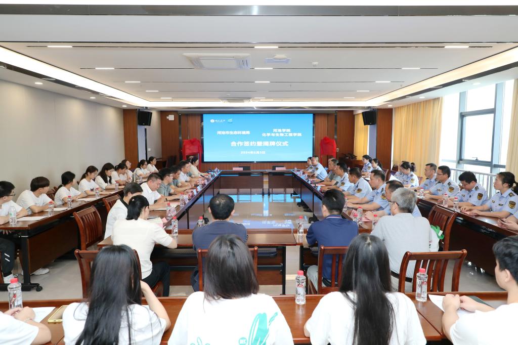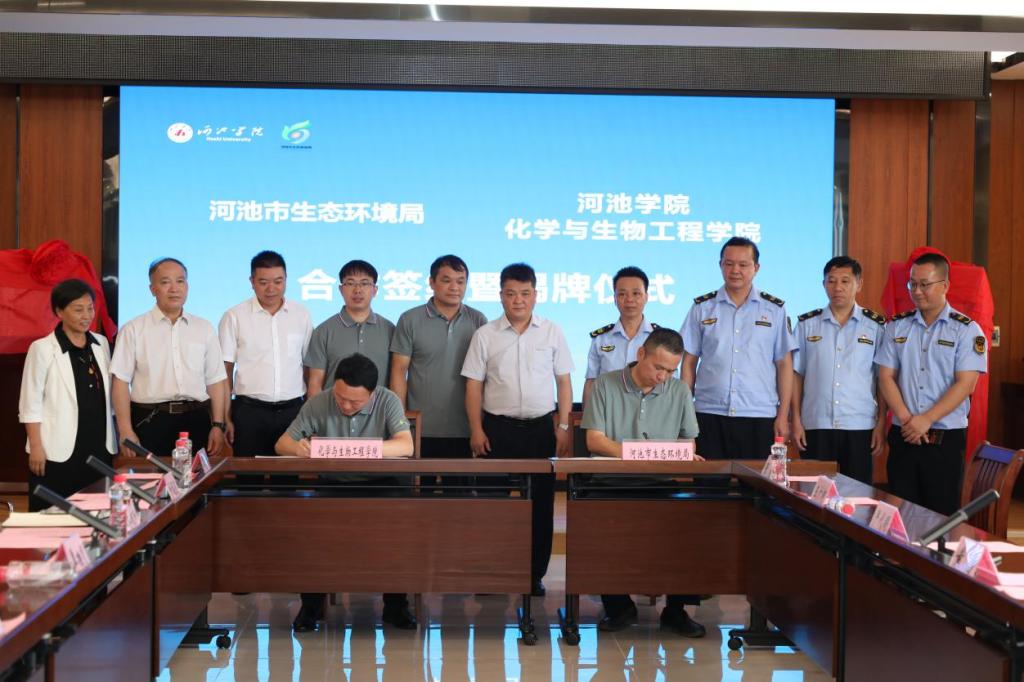 会上,双方签署了《合作框架协议》,并为“河池市绿色发展与生态环境保护研究中心”和“河池市生态环境保护综合行政执法实战实训基地”揭牌。