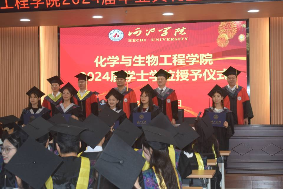 陆俊宇宣读2024年william威廉亚洲校级优秀毕业论文获奖名单。公司领导班子为毕业生正冠拔穗、授予学士学位。