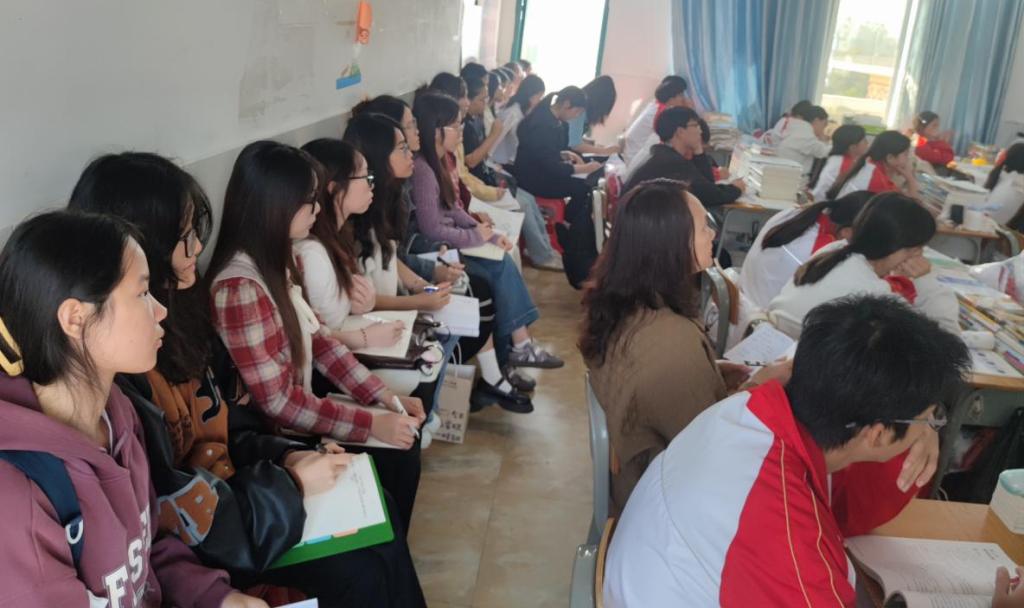 11日上午,公司师生一行来到环江高中,认真聆听骨干教师的生物学课堂教学示范课,做好听课记录以及教学反思,课后同学们与授课教师进行了亲切地交谈。下午,环江高中德育处主任卢天长,生物学高级教师韦朗朗,韦向娜老师就班级管理经验、生物学备课注意事项及教学经验、教育研究、教师职业发展规划等内容进行交流和讨论。