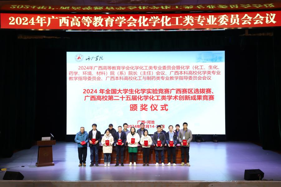 梁宏介绍了化学化工类专业委员会的基本情况,并代表化学化工类专业委员会作2024年年度工作报告。周立亚宣布2024年全国老员工化学实验竞赛广西赛区选拔赛、广西高校第25届化学化工类学术创新成果竞赛结果。随后进行颁奖仪式。