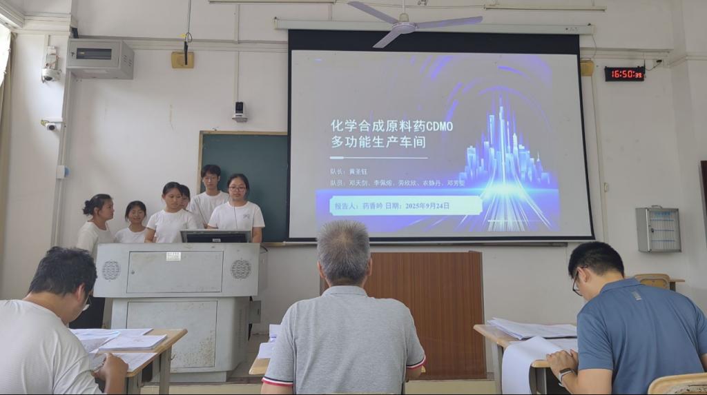 在公司预选赛阶段,各参赛团队充分利用暑期及课余时间,围绕设计任务书开展深入研讨与方案优化,展现出扎实的专业基础和良好的创新意识。答辩环节中,各队通过PPT展示和现场陈述全面呈现设计方案,评审专家从设计内容的完整性、技术路线的合理性、团队协作的有效性以及现场表达的专业性等方面进行综合评定。最终,“药香吟队”“药创未来队”“药日当空队”荣获一等奖;“碱基互补配队”“从容应队”“药想成功队”获二等奖;“漫漫队”“平步青云队”“青囊π队”获三等奖。